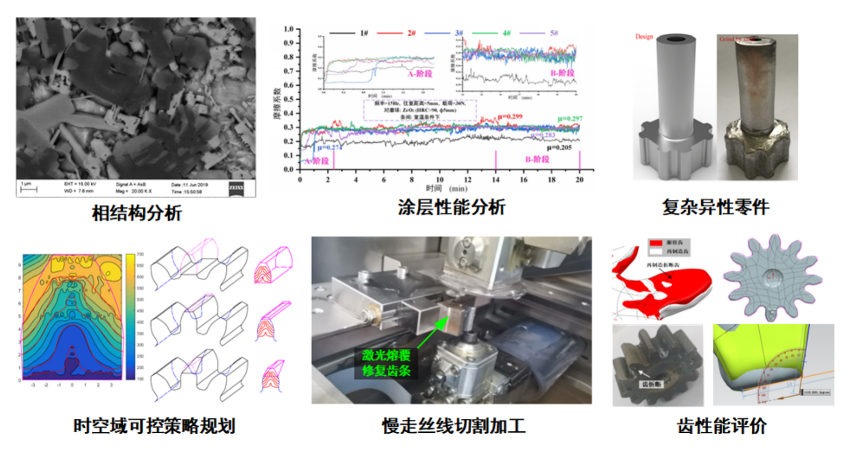 開展了復雜零件激光熔覆增材制造及再制造研究,探明了工藝參數、搭接方式與材料微觀結構和性能間的關系;研究了鎳基陶瓷激光熔覆增材制造材料設計和制造工藝,實現了激光熔覆金屬基陶瓷強化涂層增強傳動零部件表面性能。