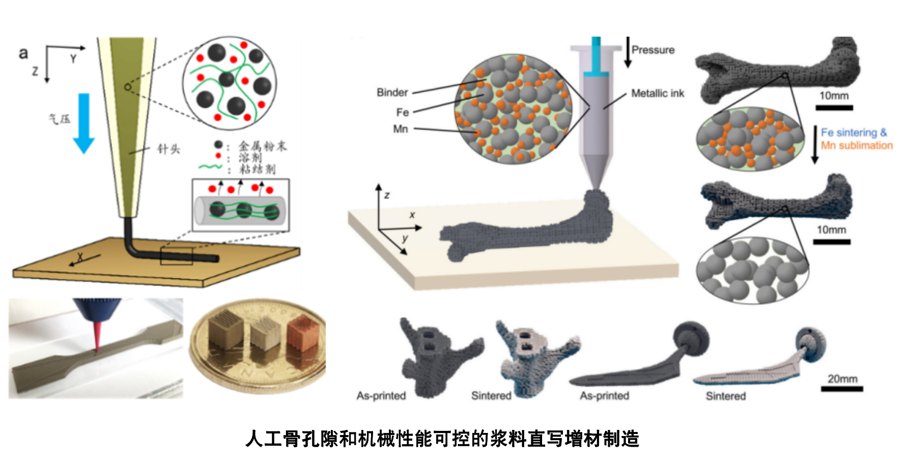 提出了漿料直寫和真空升華Mn微孔創造的結合,制備了具有分層孔的新型鐵骨植入物,即結構孔和絲內孔,保證了新骨組織的增殖和種植體與天然骨之間的合理載荷分布,為鐵骨種植體的臨床應用開辟了新的途徑。
