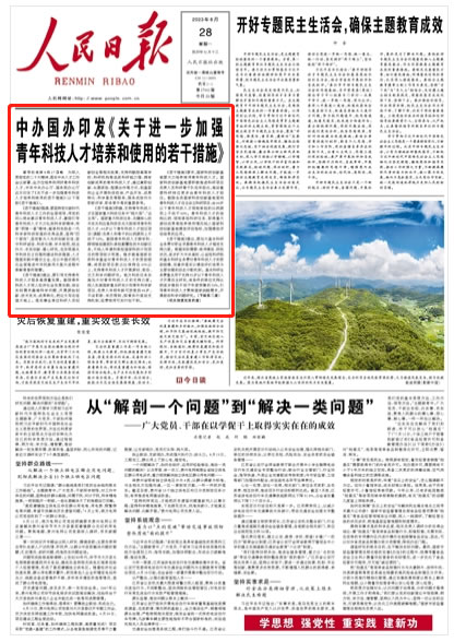 《若干措施》強調,要加強對青年科技人才工作的組織領導。
