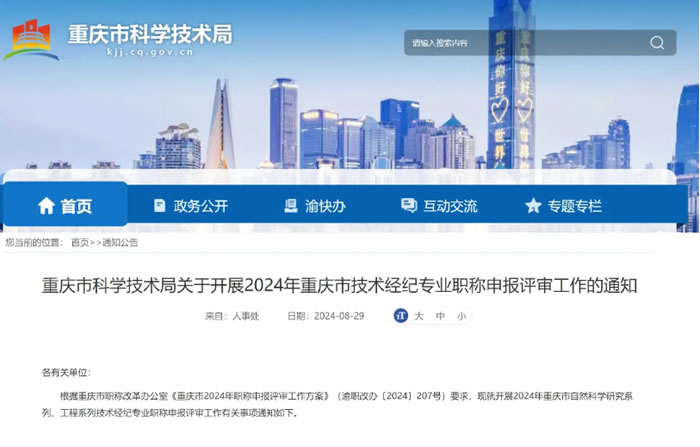 申報 | 重慶市科學(xué)技術(shù)局關(guān)于開展2024年重慶市技術(shù)經(jīng)紀專業(yè)職稱申報評審工作的通知