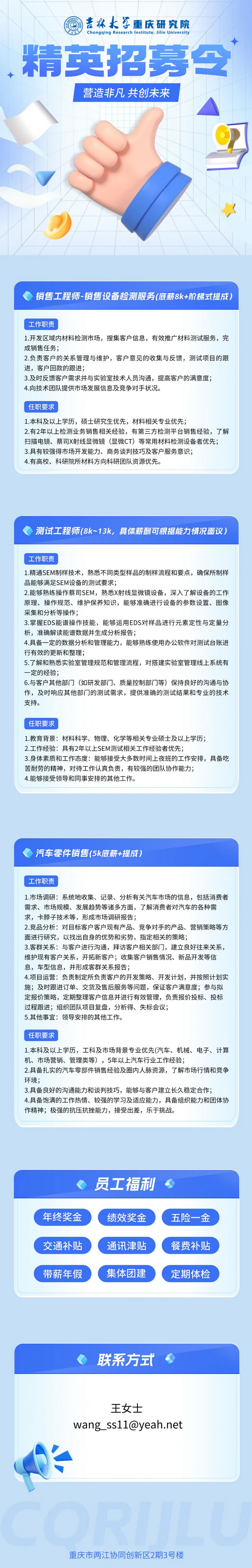 新聞中心 以吉林大學科研力量助推重慶產業高質量發展 我院要聞通知公告 2025招聘 | 吉林大學重慶研究院多崗位招人啦! 時間:2025-01-15發布:吉大研究院 上一篇:星夜兼程步履堅,逆境突圍遠征延——記吉林大學重慶研究院的2024年 下一篇:研院動態 | 喜報!我院多家持股入孵企業獲重慶市種子投資基金簽約 返回列表