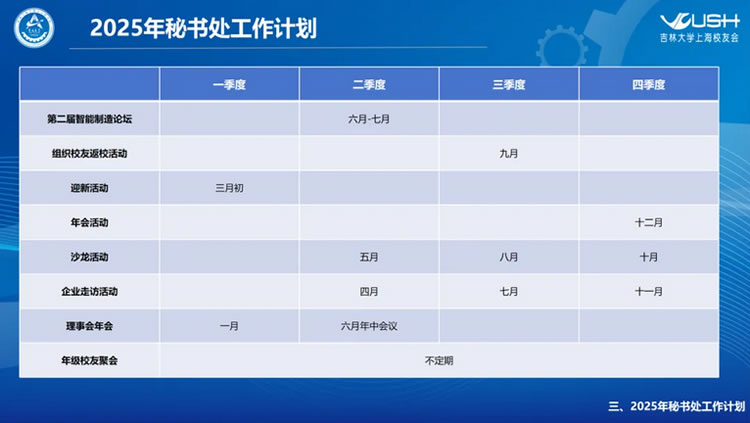 隨后副會長兼秘書長徐振宇向大家匯報2024年自吉林大學上海校友會機械分會成立以來的具體工作開展情況、費用使用情況及2025年的工作計劃。同時會上審議通過了機械分會秘書處的組織架構,正式任命兩位副秘書長:03級機械工程校友趙幗娟博士和08級機械工程校友陳希光,值得一提的是兩位校友在上海校友會2024年年終總結會上雙雙榮獲上海校友會優秀志愿者稱號。徐振宇秘書長表示,新的一年,機械分會秘書處的主要工作是打造品牌,聚攏人氣,充分的聯絡校友,發動校友,讓更多的人參與到分會當中來,為我們廣大的校友,為母校多做貢獻。