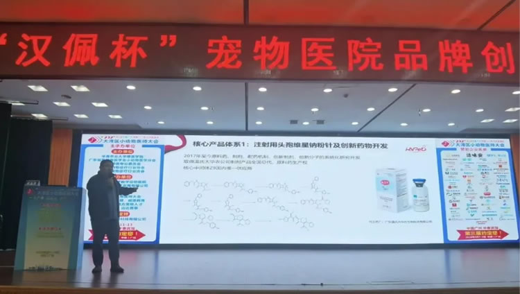 漢佩生物CTO何東賢在“大灣區(qū)小動物醫(yī)師大會”介紹漢佩生物的新獸藥