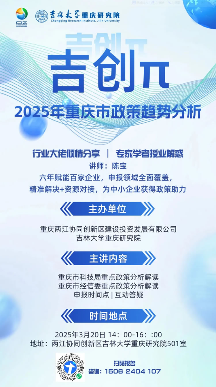 研院活動 | 吉創(chuàng)π明日開課!2025年重慶市政策趨勢分析,報名→
