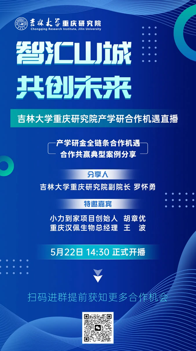 研院動(dòng)態(tài) | 直播預(yù)告!吉林大學(xué)重慶研究院攜手企業(yè)創(chuàng)始人,帶你抓住產(chǎn)學(xué)研金合作新風(fēng)口