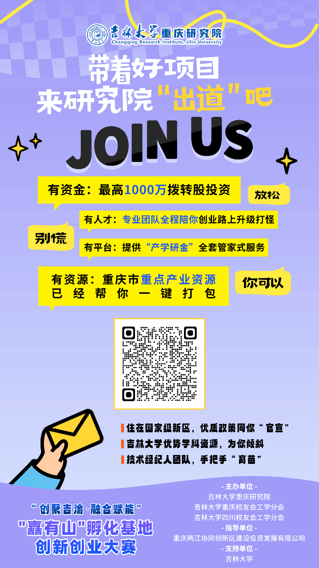 新聞中心 以吉林大學科研力量助推重慶產業高質量發展 我院要聞通知公告 @全國優質項目 吉林大學重慶研究院“嚞有山”創新創業大賽正在火熱報名中! 時間:2025-08-04發布:吉大研究院 上一篇:研院喜報 | 獲獎+2!我院兩家入孵企業項目榮獲首屆“渝創星火”重慶科技成果轉化大賽優秀獎 下一篇:研院動態 | 重慶市人民政府官網發文,吉林大學重慶研究院成重慶市“研究院經濟”代表案例 返回列表