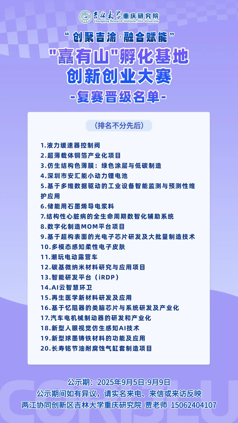 復(fù)賽晉級名單出爐 | 吉林大學重慶研究院“嚞有山”創(chuàng)新創(chuàng)業(yè)大賽復(fù)賽倒計時