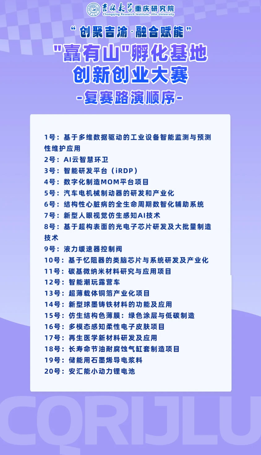 復(fù)賽通知 | @晉級項目 吉林大學(xué)重慶研究院“嚞有山”創(chuàng)新創(chuàng)業(yè)大賽復(fù)賽路演順序來了!